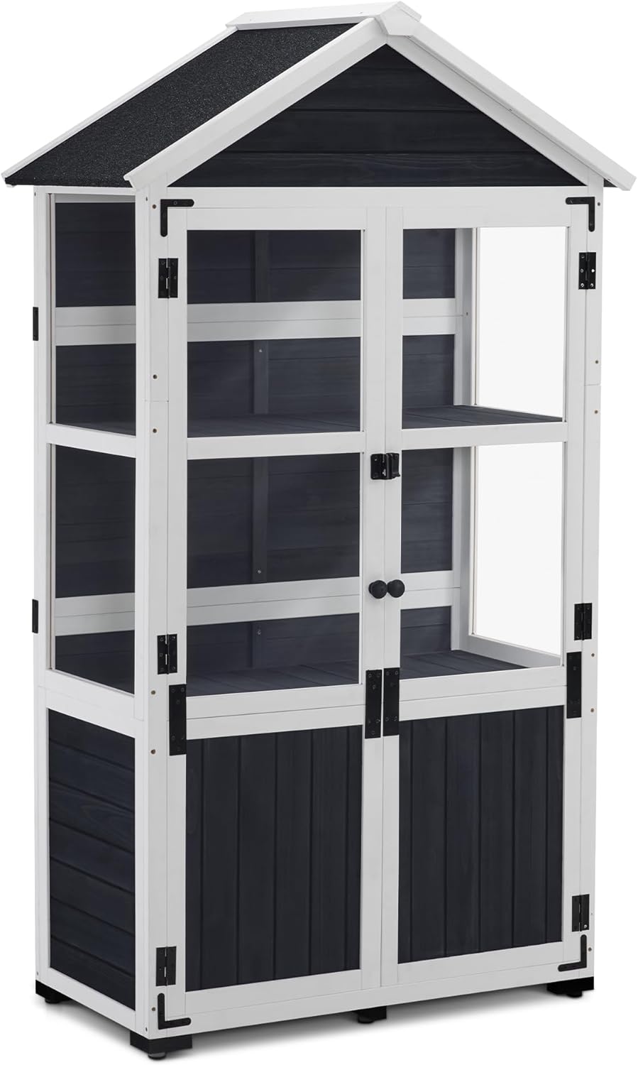 M MCombo Petit abri de Jardin en Bois - Résistant aux intempéries - Serre pour l'extérieur - Balcon - Terrasse - 100 x 53 x 178 cm - 0111 (Gris Anthracite)