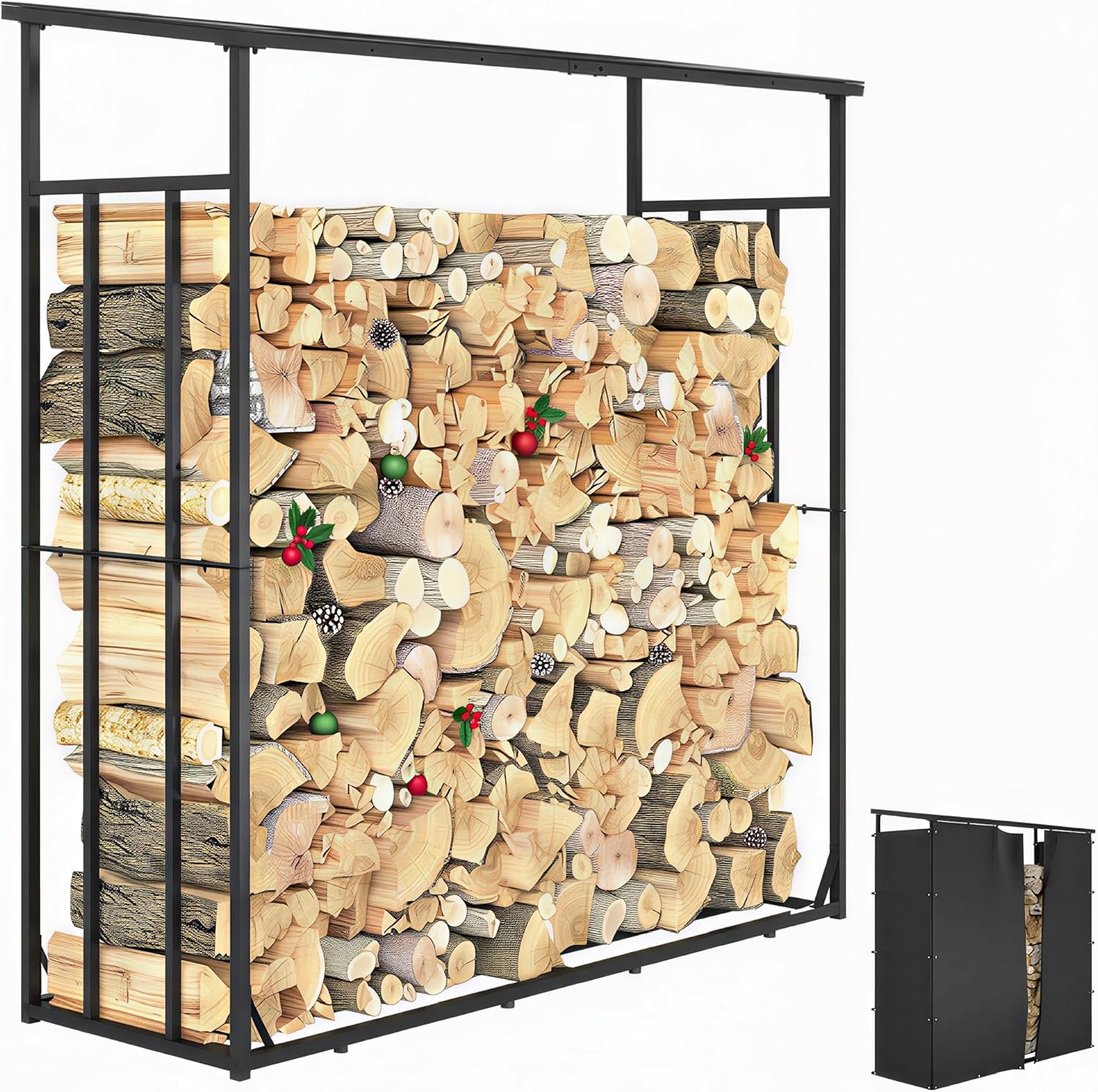 TERRE JARDIN - Range Bûches Extérieur 186 x 70 x 185 cm - Abri Bois de Chauffage avec Housse Protection - Support Bûches Extérieur en Acier Galvanisé Robuste - Résistant aux Intempéries