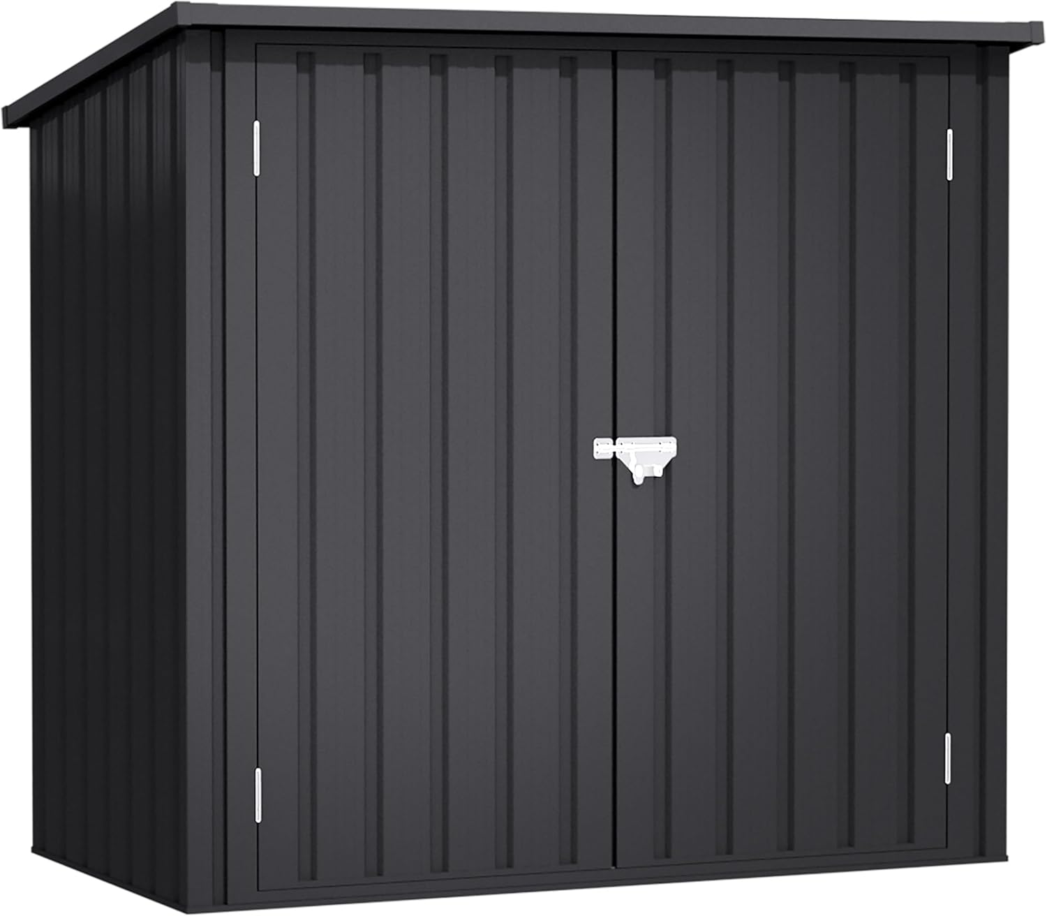 Wasabi - Abri de Jardin Métal 1100 L Stark - 147x86x134cm- Double Porte à charnières - Verrouillage du loquet – Gris Anthracite - Armoire de Rangement extérieur