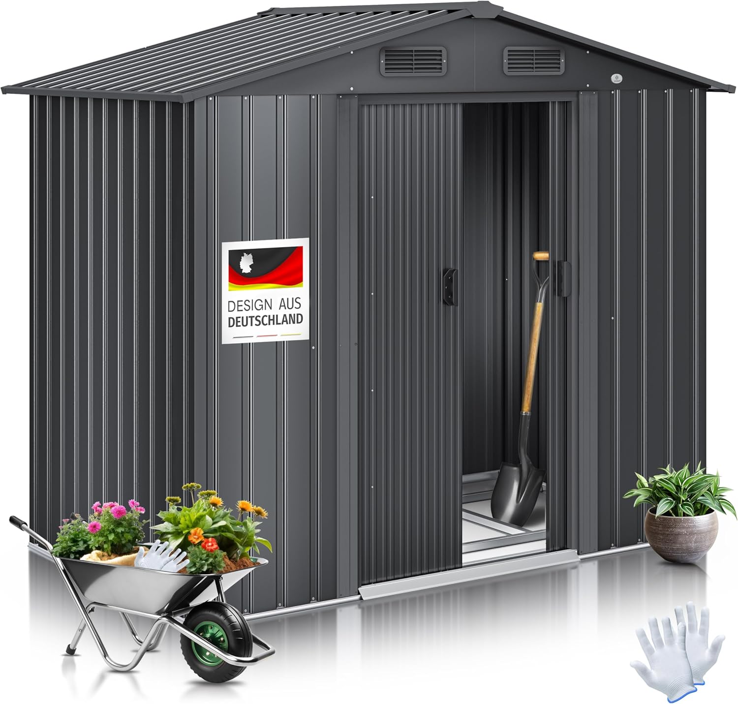 KESSER Abri de Jardin XL en métal de 4,2 m³ avec Fondation, Gants de Travail, 182 x 118 x 186 cm, 2 Portes coulissantes, Abri à Outils, Armoire, Toit à pignon, abri de Jardin, Anthracite