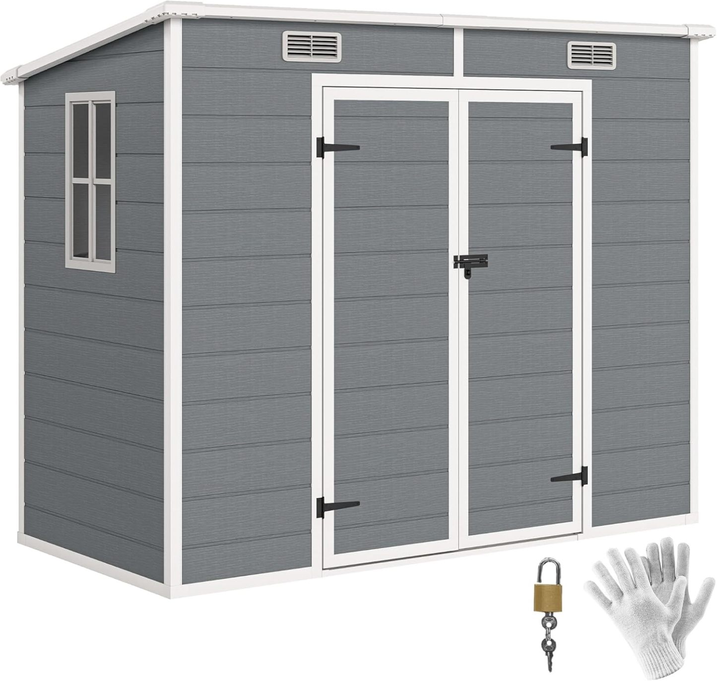 Outsunny Abri de Jardin 2,54 m² cabane de Jardin extérieur 2,4 x 1,3 m cabanon Rangement Outils avec Fondation, fenêtre, Portes verrouillables et 2 aérations, abri à Outils en Aluminium et PP, Gris