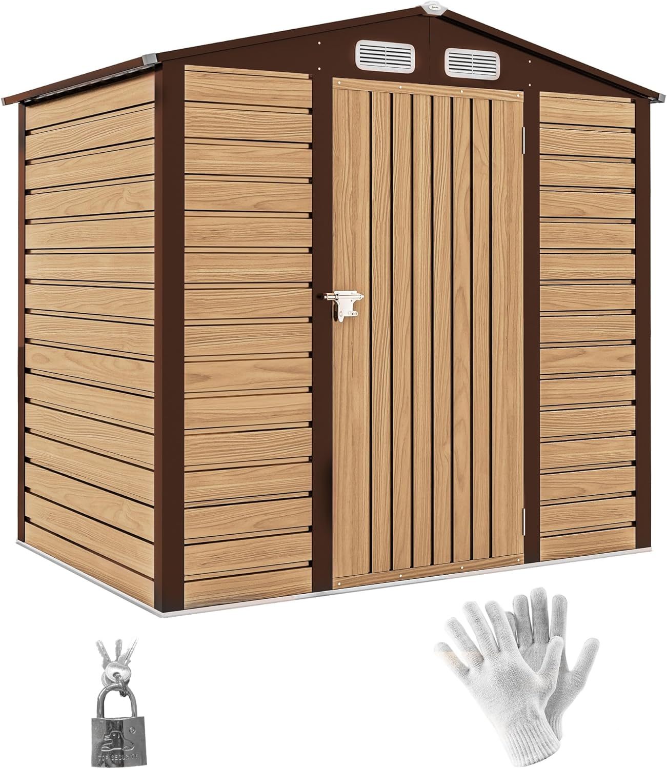 EXCELLENTE VENTILATION ET ACCÈS FACILE : Équipé de 2 ouvertures de ventilation, ce cabanon de jardin en acier évite l'humidité et les mauvaises odeurs, gardant vos outils au sec. Sa porte permet un accès facile aux outils, tondeuse ou objets à roues. Par une journée ensoleillée, sortez le banc de jardin pour planter des fleurs en famille ou allumez le barbecue pour un après-midi convivial