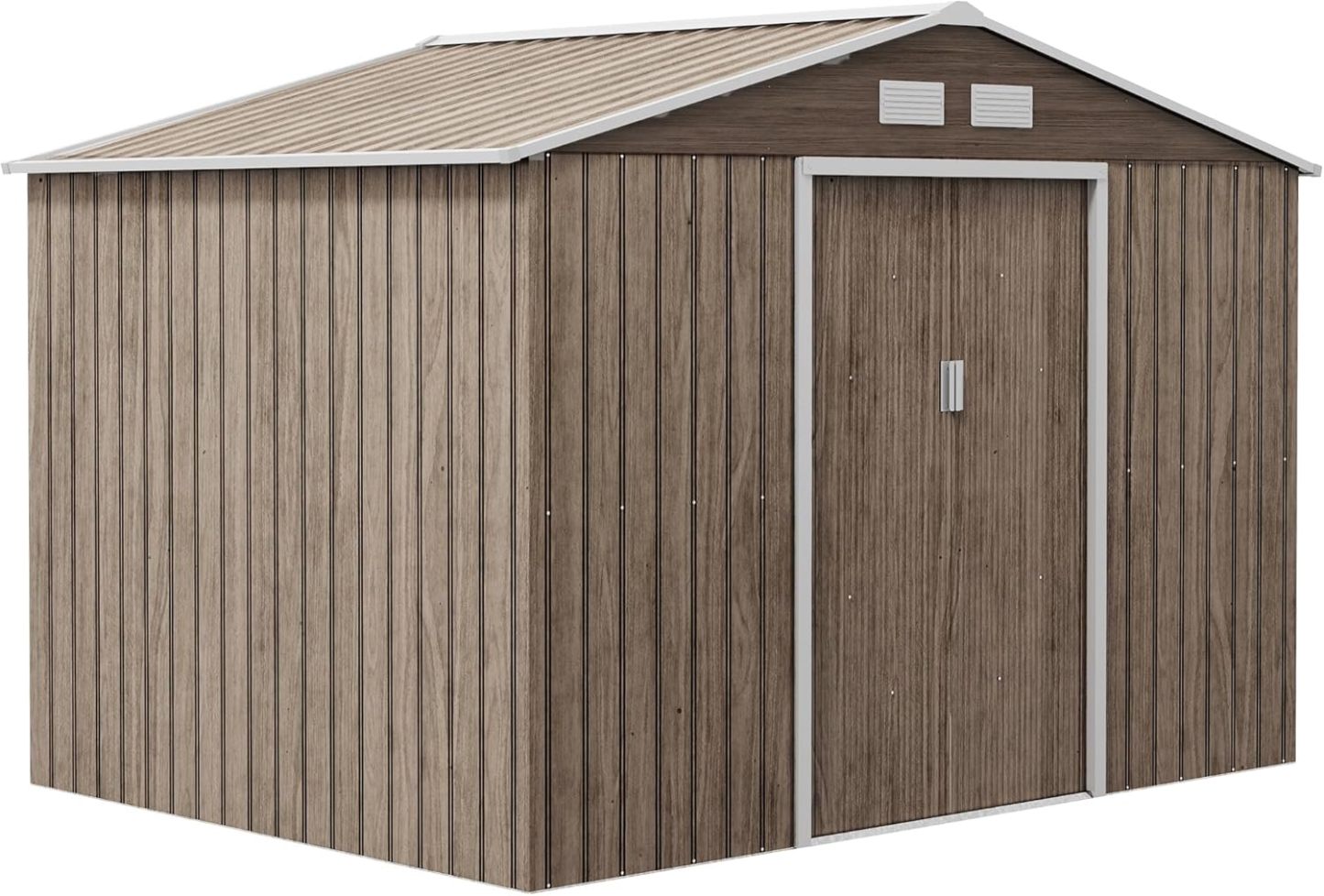 ÉLÉGANT ABRI DE JARDIN : Avec sa structure en tôle d'acier marron clair, cet abri de jardin ajoute une touche d'élégance à votre jardin. Son toit incliné garantit une évacuation optimale de l'eau de pluie, alliant style et fonctionnalité.