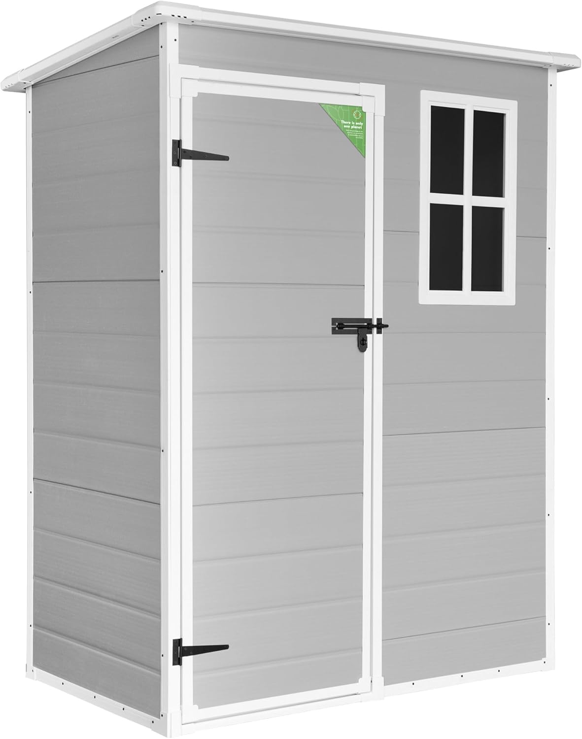 WASABI Abri de Jardin en Résine Unit 1.4 - Assemblage Simple - Fenêtre à lumière du Jour - Panneaux de 12mm d'épaisseur - Plancher Inclus - Blanc Gris - Cabane de Stockage extérieur en PVC 1,37m2